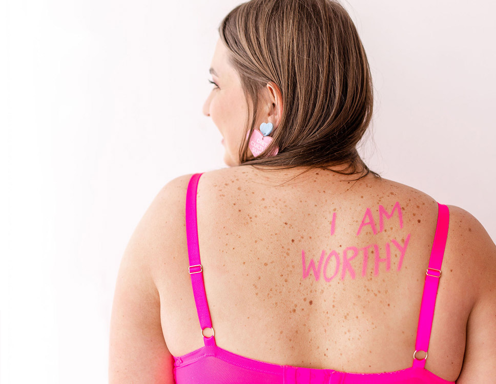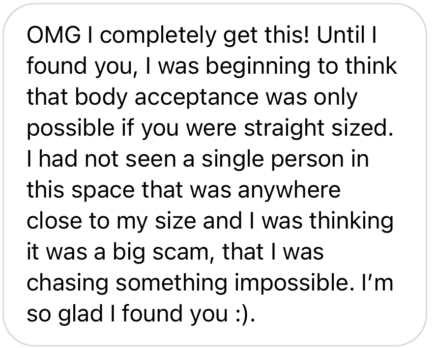 Positive body image and confidence does not depend on the way that your body looks, because body image is about what's going on inside. As a body image coach, I take an 'inside out' approach with my clients, where we focus on changing the way you feel about yourself, rather than changing what you look like. That's the ONLY way to achieve sustainable body confidence and self-love that lasts forever!